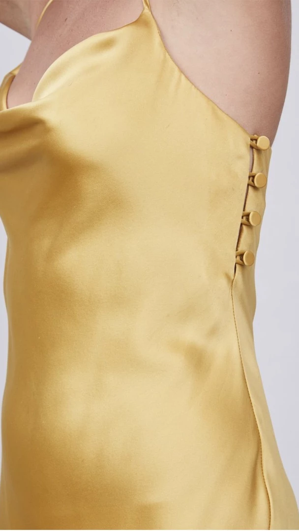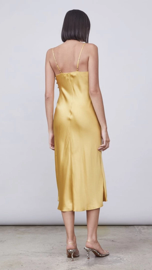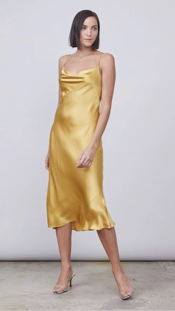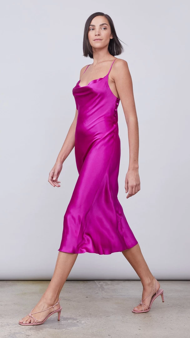 A staple in every woman’s wardrobe: the silk slip dress. The Allen Schwartz slip has a flattering soft-to-touch fit with thin straps and hits just below the knee at a midi length.