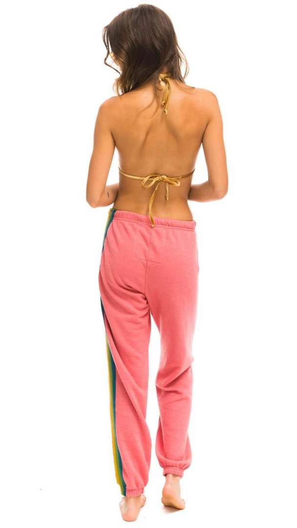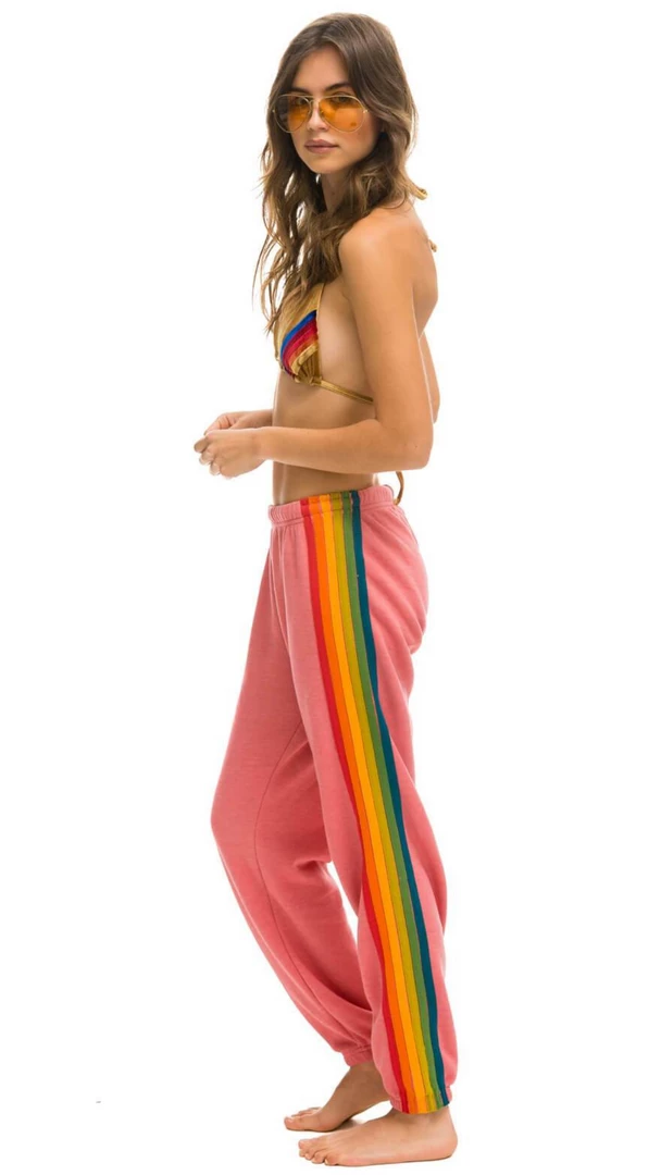 Turn heads in these sweatpants with our new rainbow Aviator Nation 6 stripe stitch work down the entire leg. Pair it up with your new go-to favorite 6 Stripe Hoodie and you’re set.