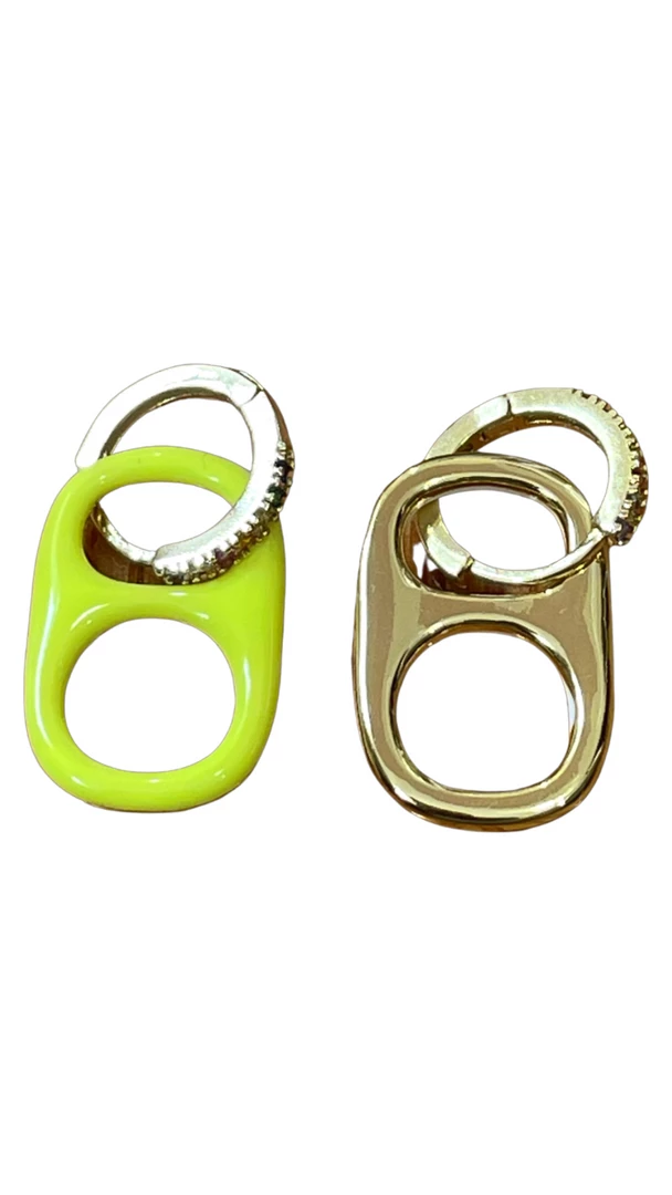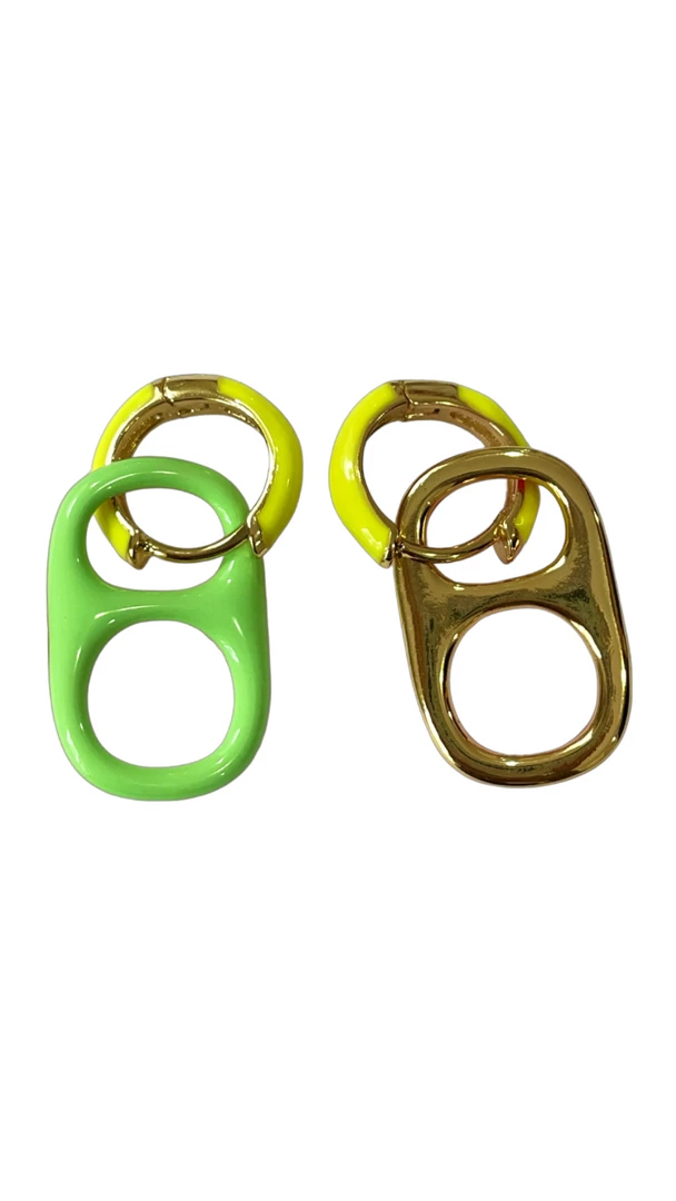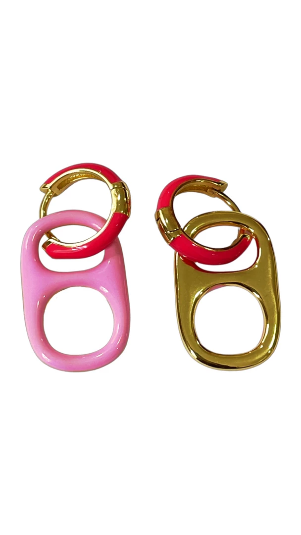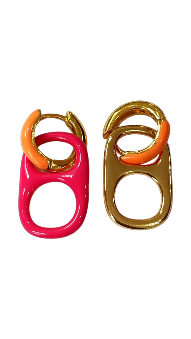 ICONIC! As seen on Kylie Jenner, Demi Lovato, Behati Brinsloo Levine and Ashley Park from “Emily in Paris” to name a few. Thick enamel coated over Gold-plated metal. The other side of the pop is buttery gold, so you can flip and it’s like 2 earrings in 1!