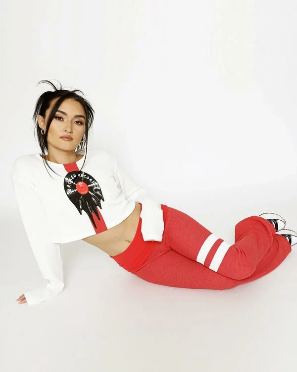 Cropped thermal long sleeve shirt. Made in Los Angeles, California.