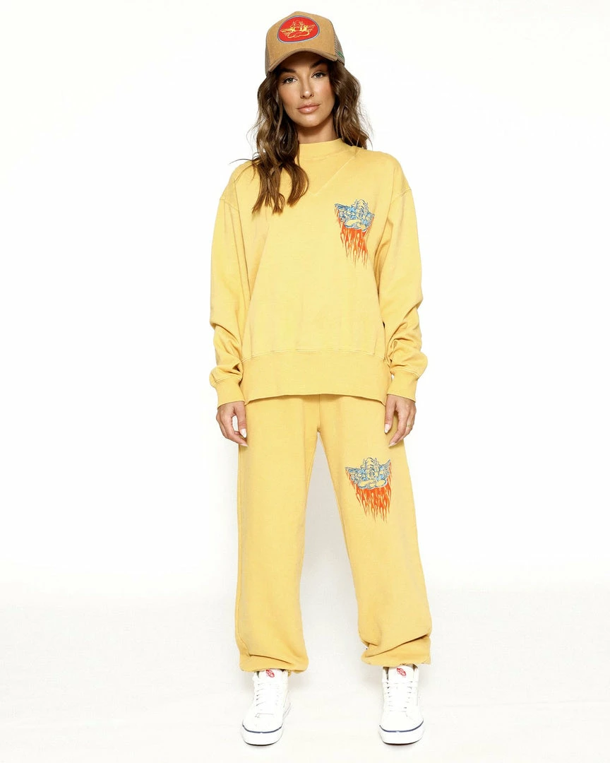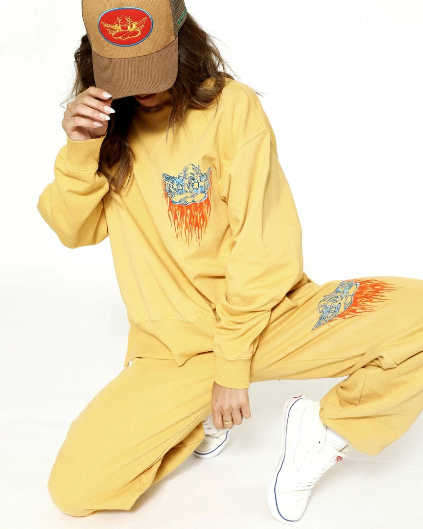Lightweight fleece. Mock neck oversized crewneck with ribbed detailing and side slits.