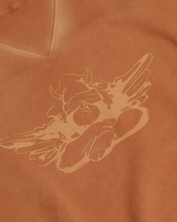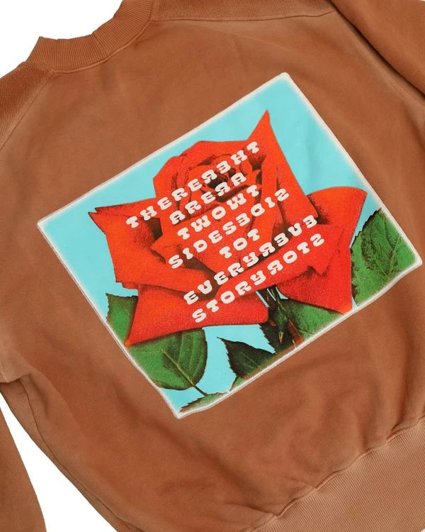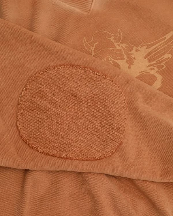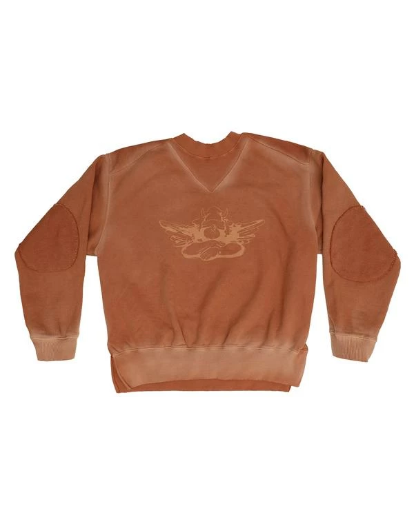 Mock neck oversized crewneck with ribbed detailing, side slits, and elbow patches. Made in Los Angeles, California.
