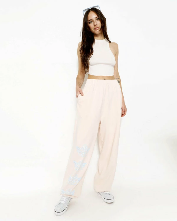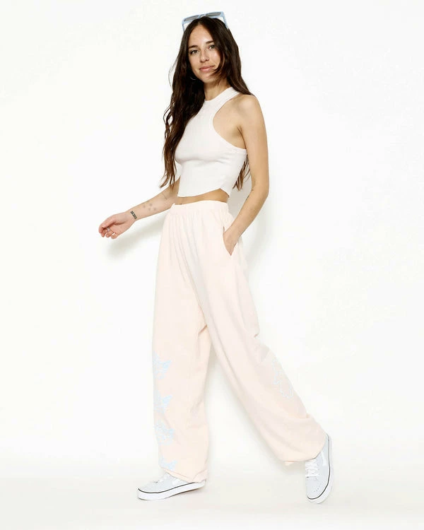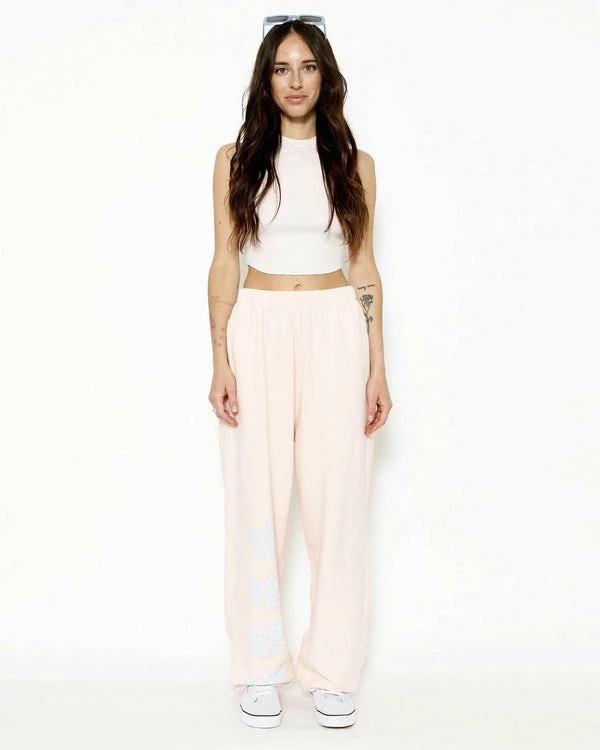Lightweight terry fleece fabric in blue and pink dip dye. Oversized high rise sweatpants with back and side pockets, elastic waistband and cuffs. This item was hand dyed and may show slight color variations.