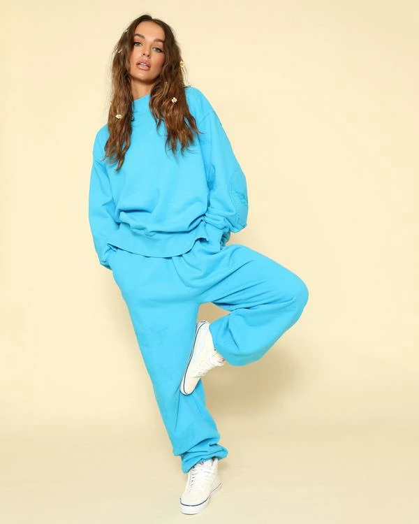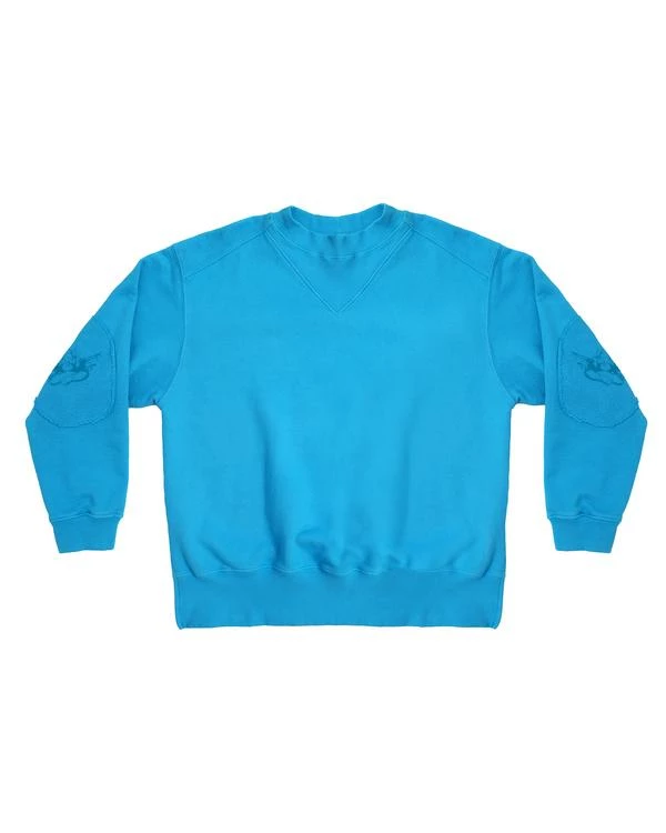 Mock neck oversized crewneck with ribbed detailing, side slits, and elbow patches.