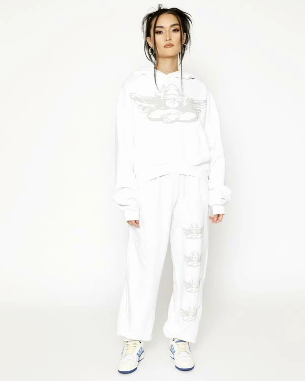 Mid-weight french terry. Oversized high rise sweatpants with back and side pockets, elastic waistband and cuffs.