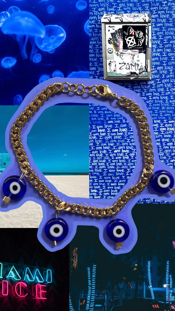 We’re seeing retro with The Carmela bracelet from Delouie. With this gold chain and evil eye accents, the Carmela is the perfect way to complete your retro look.