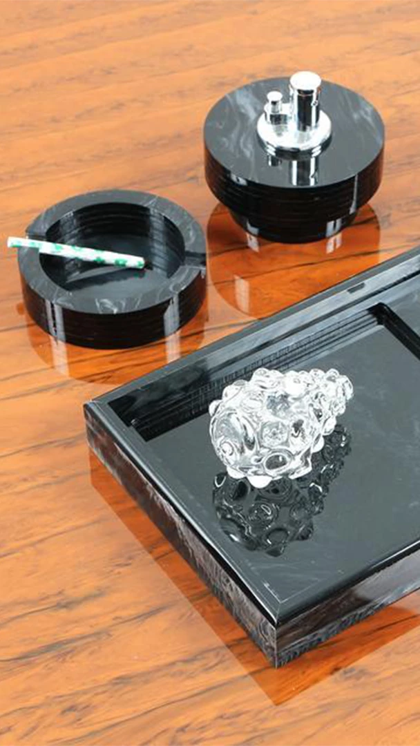 Inspired by vintage table lighters of the past, and surprise! This cleverly designed acrylic piece comes nestled inside its own matching ashtray because that’s how we roll.
