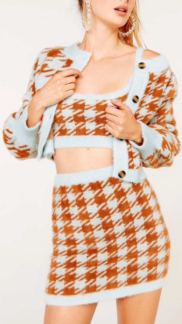Ugh, as if! Channel your inner 90s It girl in the Cher Houndstooth Mini Skirt, featuring an exaggerated houndstooth print, an elastic waistband and fitted silhouette.