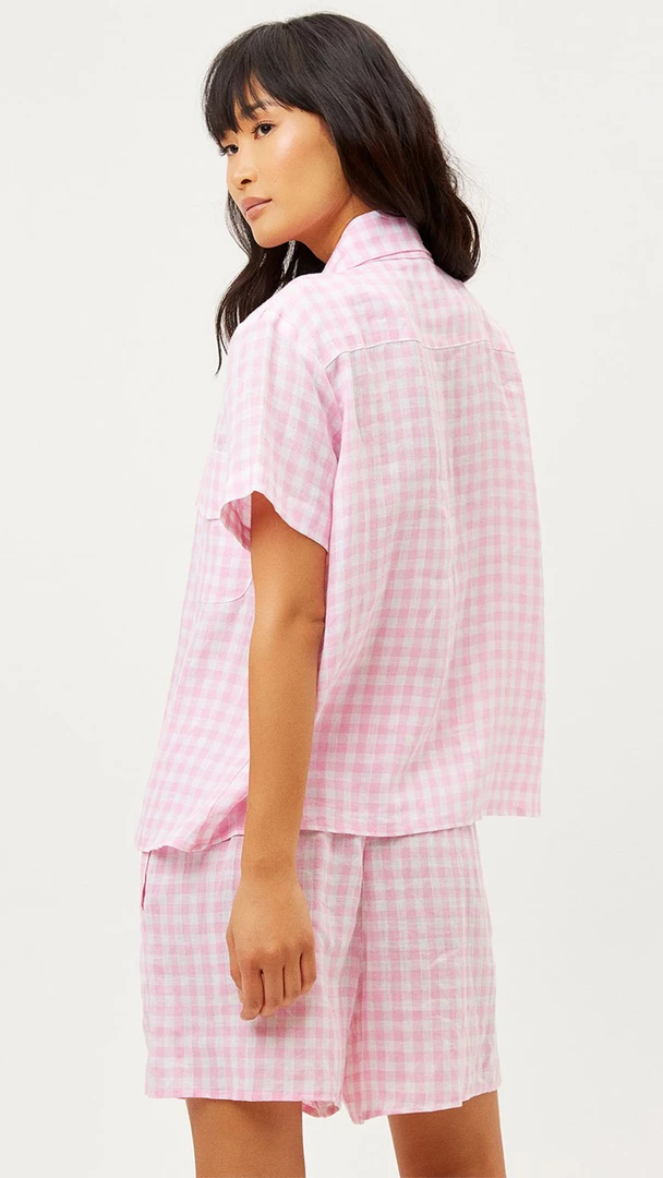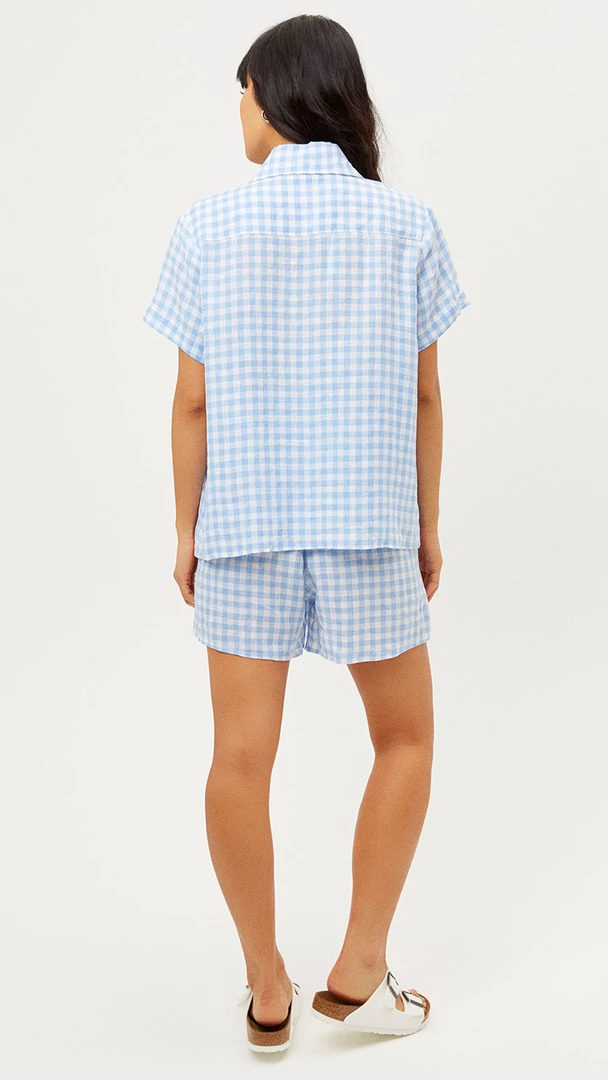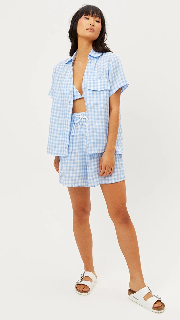 Introducing Lou. Our newest boyfriend style button up shirt. Designed in our newest jacquard knit fabric, she is made for any occasion. Pair this button up shirt back with the Lou shorts for the perfect beach look. This set is vacay ready!