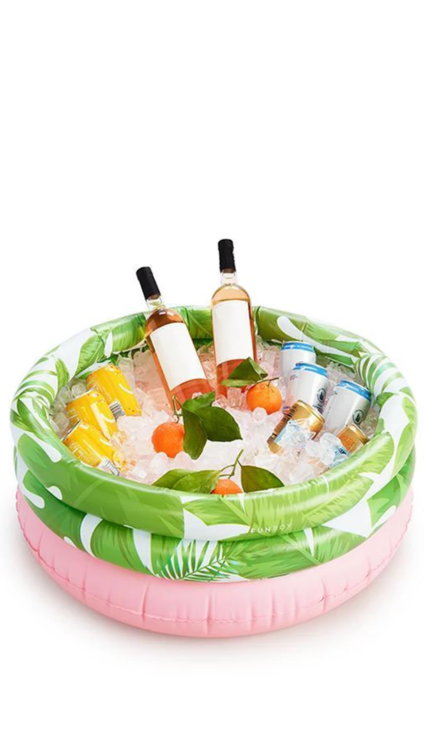 FUNBOY reimagines backyard entertaining with the companion Tropical Palm Inflatable Drink Cooler. Each cooler fits up to 18 cans and 3 bags of ice. Perfect for all the drinks you need to keep your family hydrated all summer long! Floats.