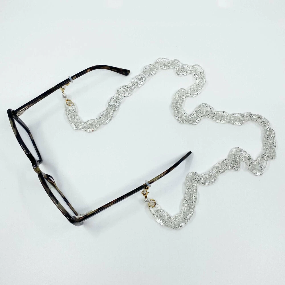 - Rubber loops attached to lobster clips allow the chain to slide onto the sides of your glasses. An extra set of rubber loops included with every purchase. Use metal bead to tighten rubber loop depending on width of your frames.