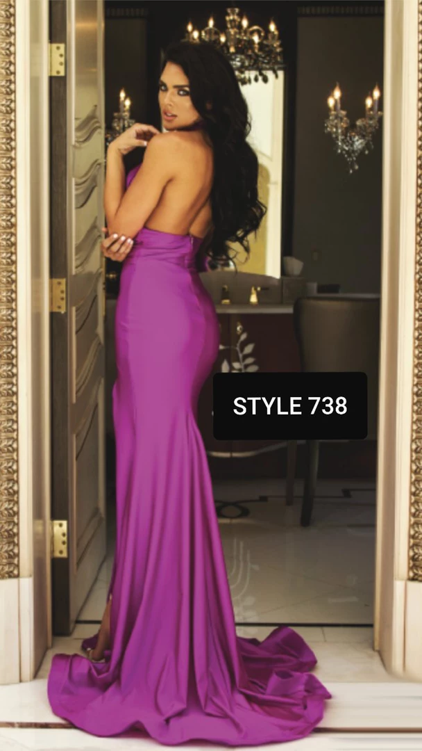 Enchantress: Style 738, from the Jessica Angel Collection is a fitted silhouette with halter neckline. The fabric is a stretch lux jersey.