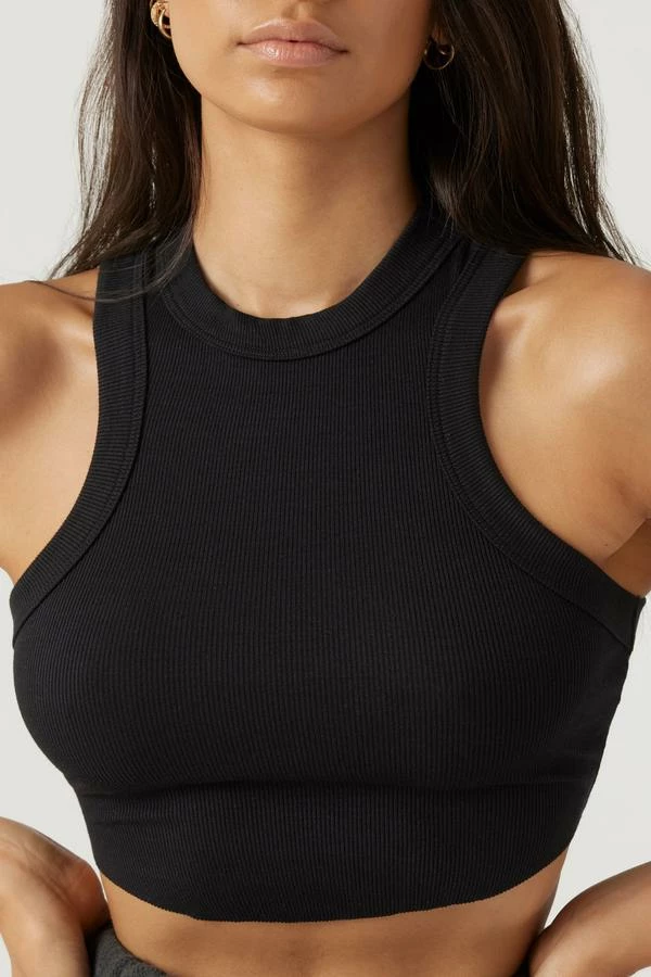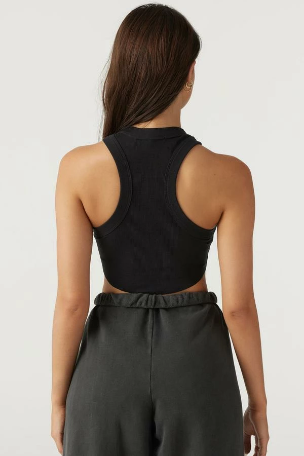 CROP TANK FEATURING AN EXAGGERATED CREW NECKLINE AND CURVED HEM.