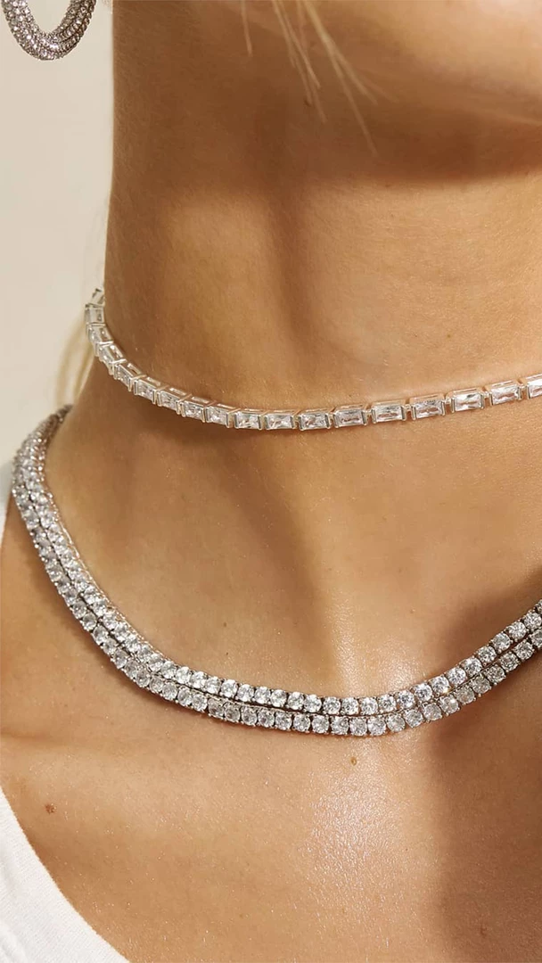 - Pave tennis necklace with 2.5mm Round Cut crystals