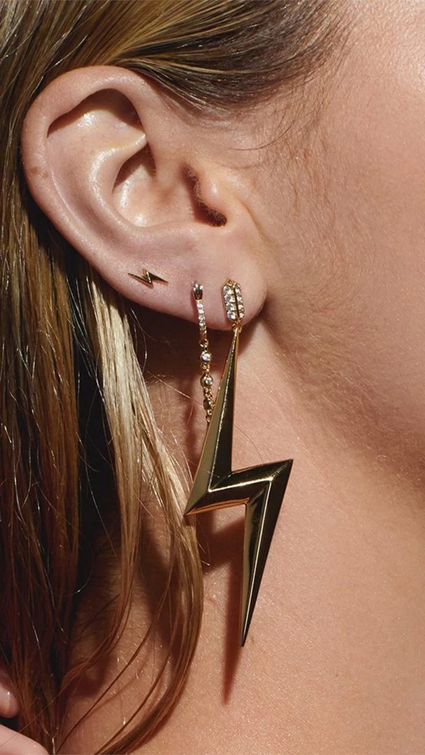 - Pair of Statement Lightning Bolt Earrings with Pave Bar Stud Detail