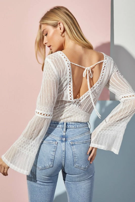 + LACE BODYSUIT + SELF TIE DETAILED BACK + V-NECK