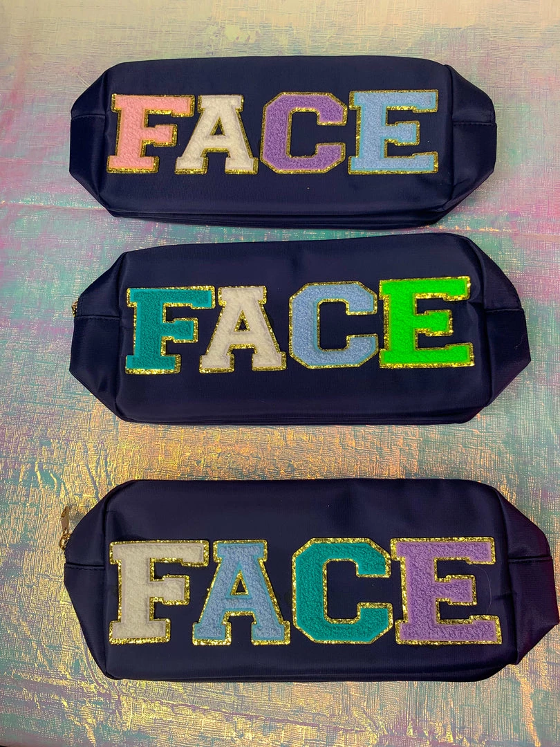 Our best-selling nylon pouches are embellished with chenille glitter patches! These make great gifts and are perfect for holding all of your essentials. Dimensions: Approximately 10" x 3.35" x 5.5"