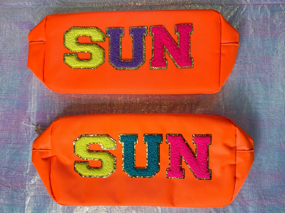 Our best-selling nylon pouches are embellished with chenille glitter patches! These make great gifts and are perfect for holding all of your essentials. Dimensions: Approximately 10" x 3.35" x 5.5"