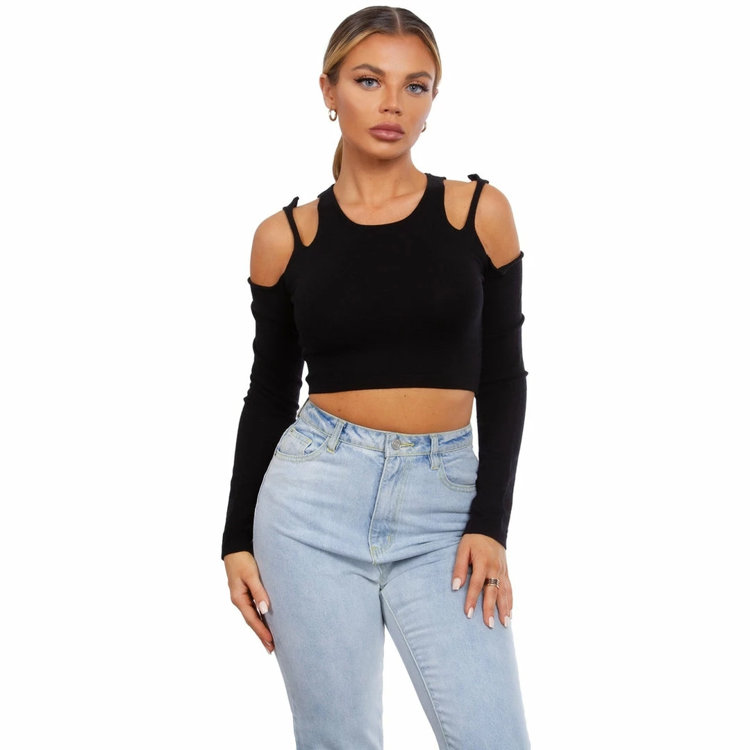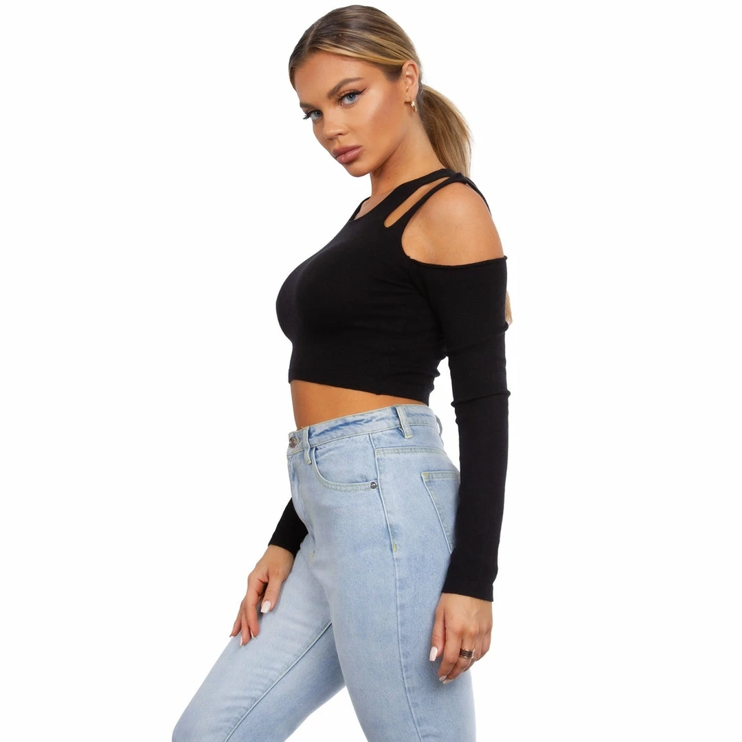 Sandie Rib Knit Crop Top. Off The Shoulder Cut Out. Material Allows Stretch. Model Is Wearing A Size Small.
