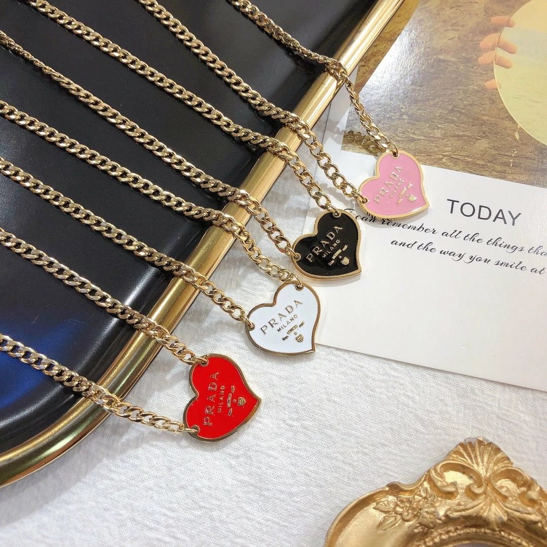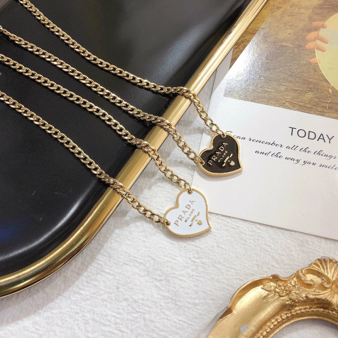 Gold chained necklace with an authentic repurposed white Prada heart pendant.聽