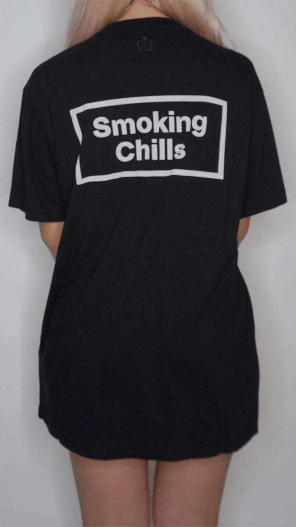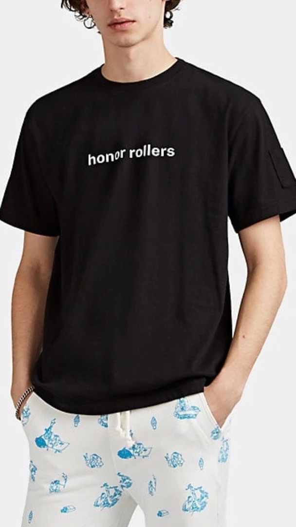 Sundae School’s T-shirt is cut from black cotton jersey designed with a relaxed fit. Provocatively referencing today’s cannabis conversation, the South Korean label prints this style with bold white “Honor Rollers” and “Smoking Chills” lettering.