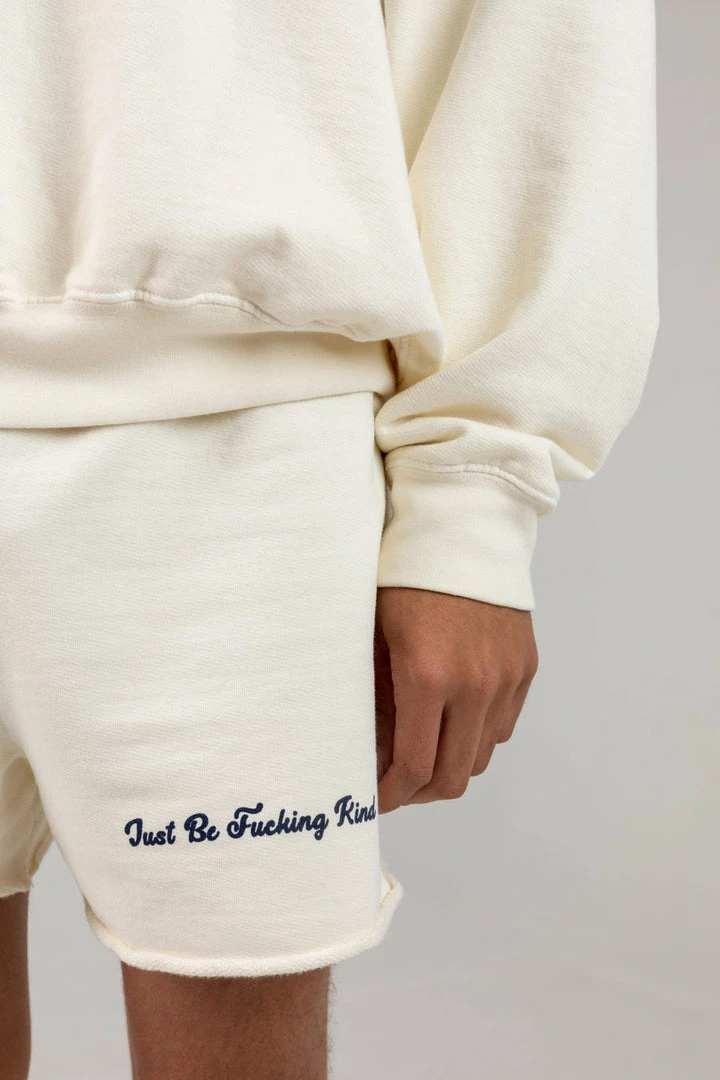 The Mayfair Group JUST BE FUCKING KIND Cream Sweatshorts NEW IN