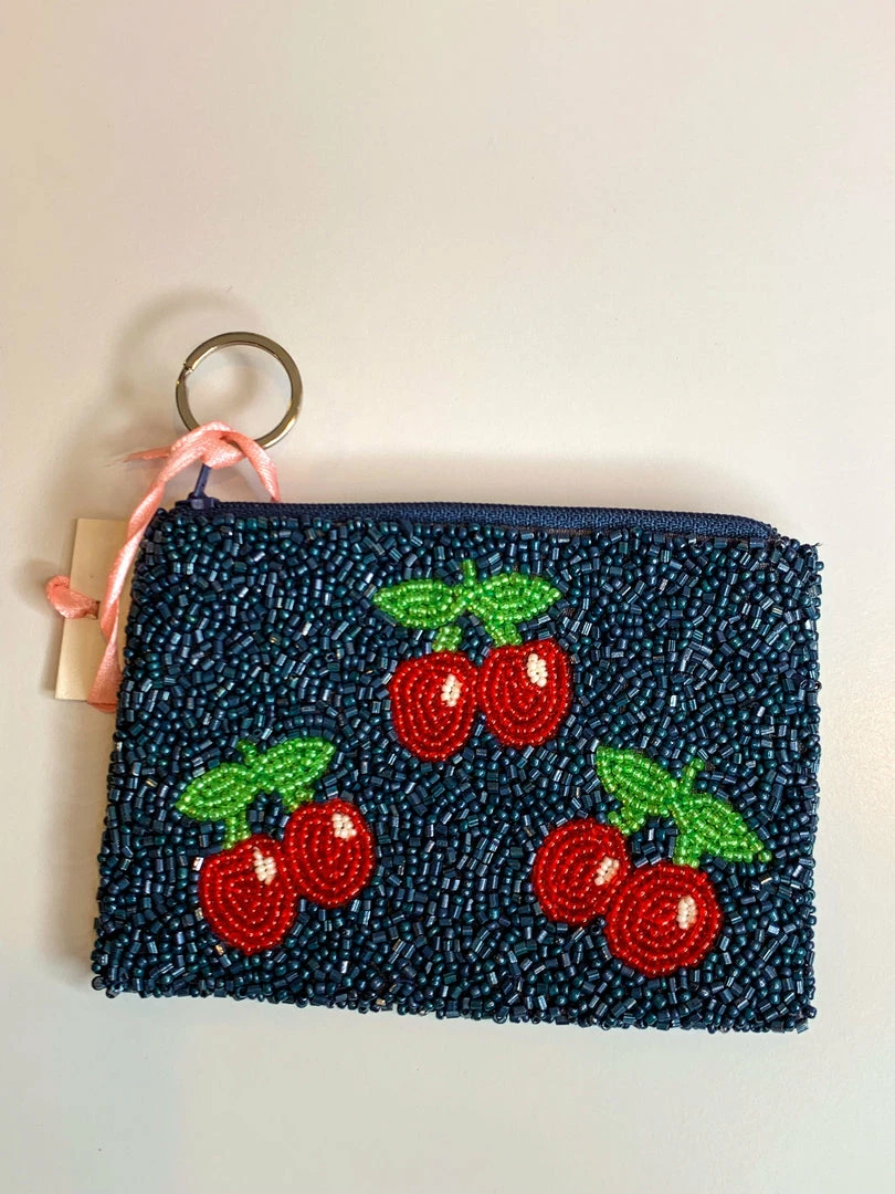 This hand beaded pouch is perfect for storing your coins, lip gloss, and whatever else you carry on the move! A plus is that you can also attach it to your keys.