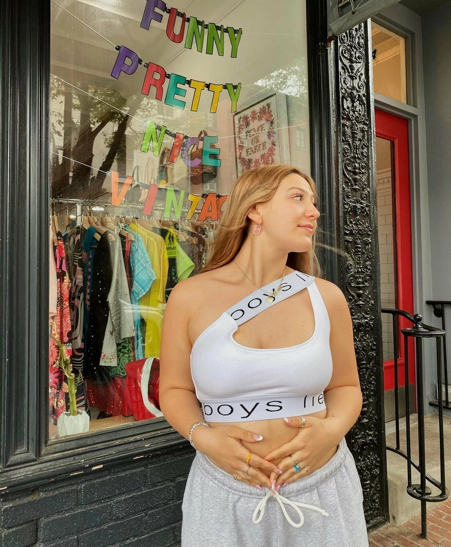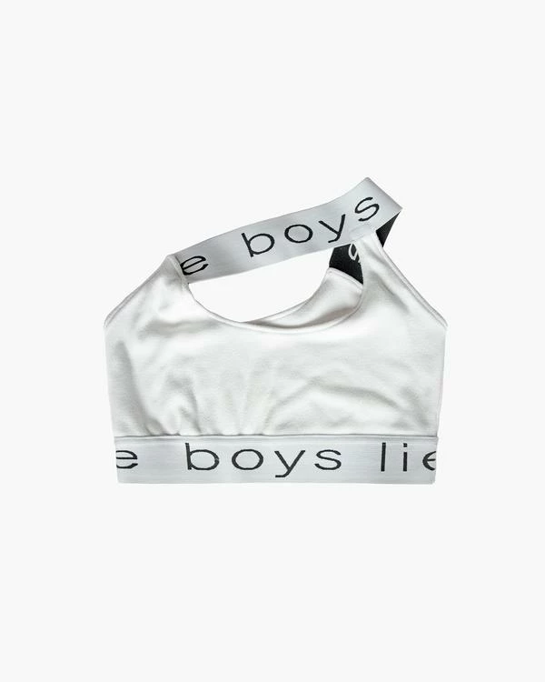 This bralette is made with a modal/spandex rib knit, and a custom Boys Lie jacquard nylon band. This is our first top with a size run!